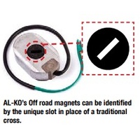 For off road application AL-KO have developed a unique magnet specifically designed to prolong magnet life. This magnet is identified by a special high tech “plastic” core in the centre of the magnet. This core should be periodically inspected for wear and the magnet replaced if wear is evident. As the off road magnet does not use a magnet retaining clip, we suggest it is held in place for service installation by a light rubber band which will disintegrate on the first brake application.